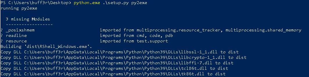Verrà creata una nuova cartella, dist, con all’interno diverse dll e la nostra backdoor RShell_Windows.exe.
