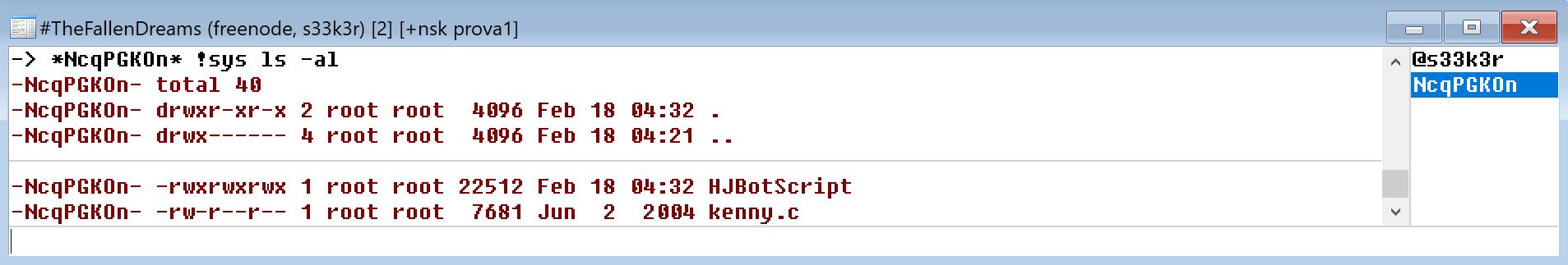 ./HJBotScript chat.freenode.net:6667 TheFallenDreams prova1
