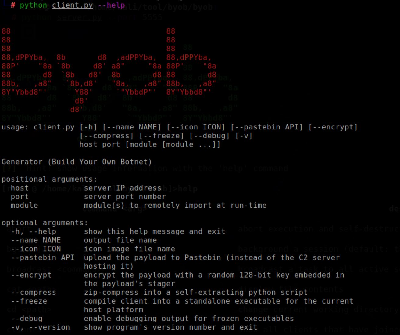Utilizzando il comando git, scarichiamo da github “Build Your Own Botnet” (BYOB)