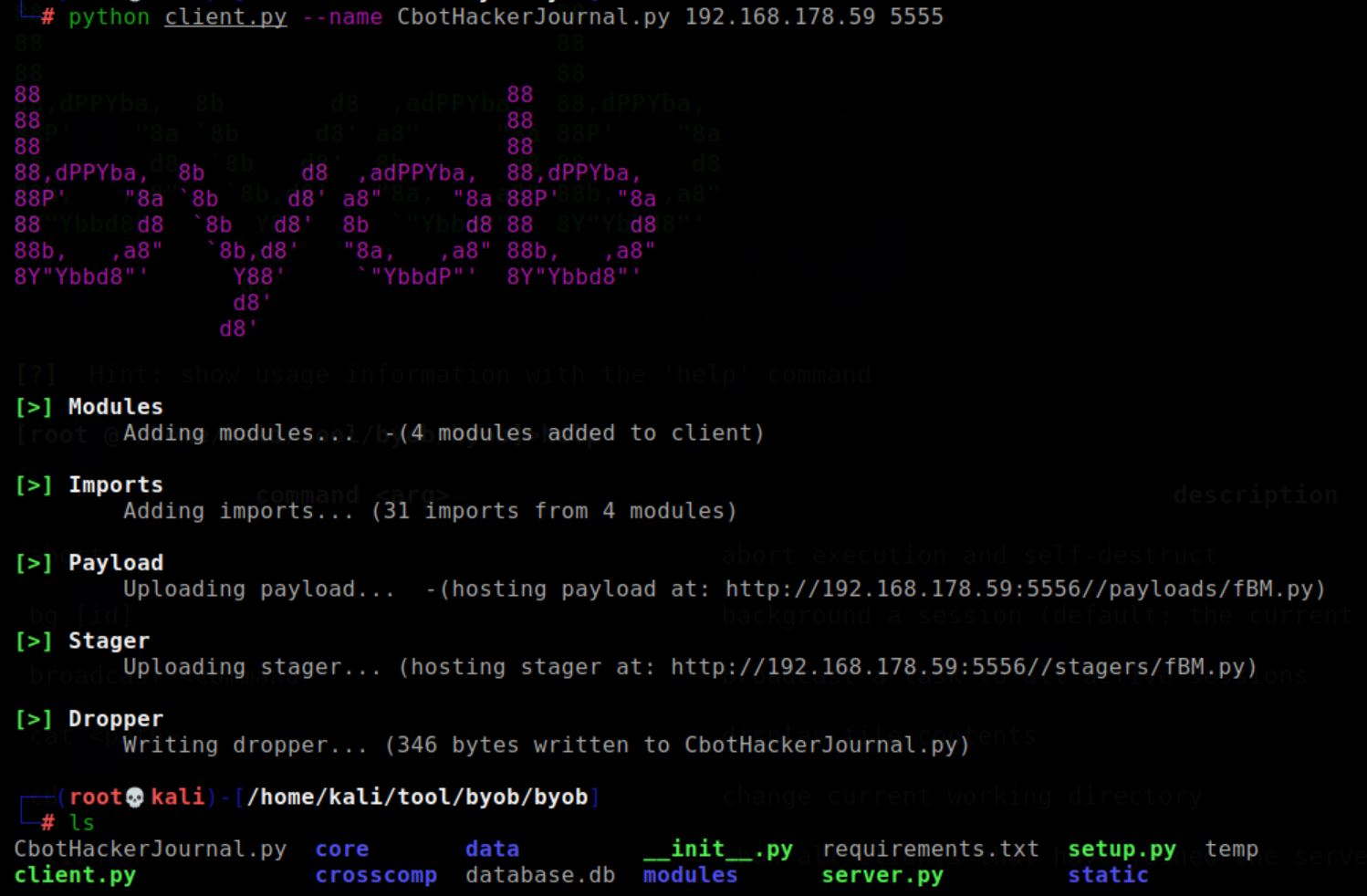 python client.py –name CbotHackerJournal.py 192.168.178.59 5555